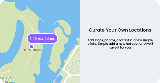 Add stops, photos, and text in a few simple clicks. Don’t see what you are looking for? No worries, simply add a new hot spot and we’ll save it for you to use again in the future.